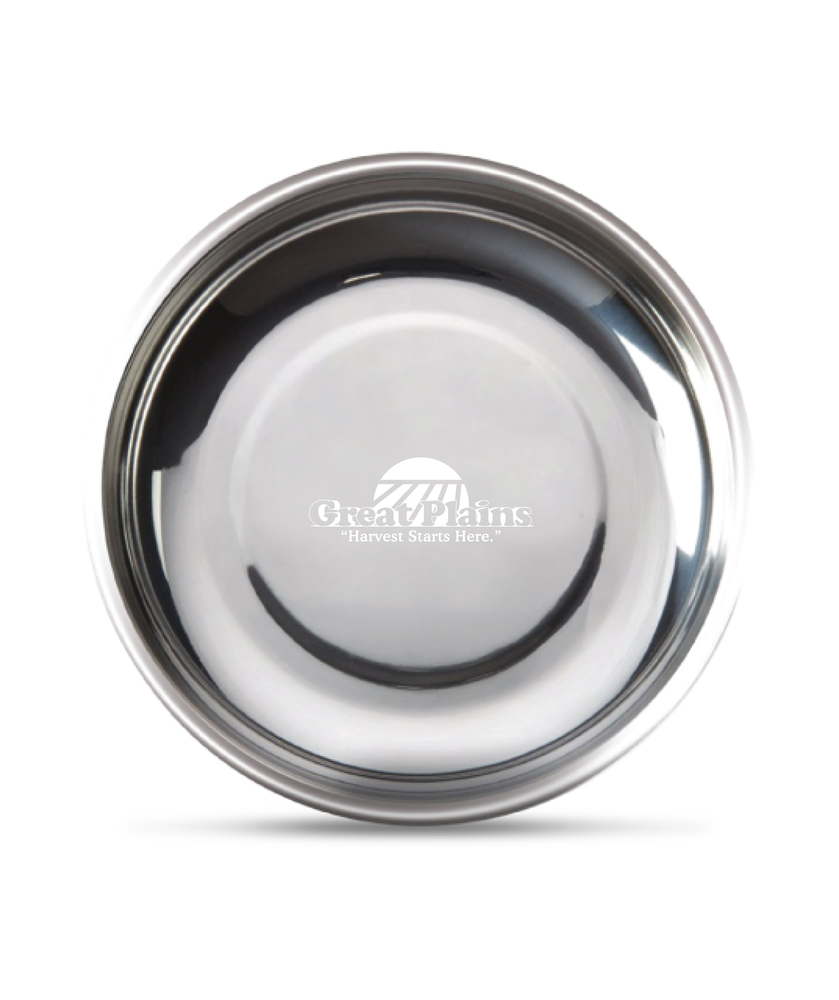 Collect small metal items in this 6 inch stainless steel magnetic parts bowl with a custom corporate logo. Perfect for a desk or workshop, so those important items don't get lost!